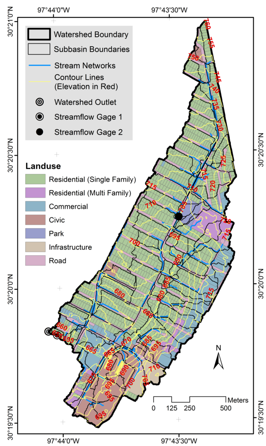 Assessing the performance of LID practices at a catchment scale is important in managing urban watersheds. Few modeling tools exist that are capable of explicitly representing the hydrological mechanisms of LIDs while considering the diverse land uses of urban watersheds. In this paper, we propose computational modules that simulate the hydrological processes of LIDs including green roof, rain garden, cistern, and porous pavement. The performance of the modules was evaluated using plot scale experimental monitoring data. The effectiveness of LIDs was investigated in a highly urbanized watershed located in Austin, TX. Results indicate that the performance of LIDs is sensitive to LID configurations, application areas, and storm event characteristics, suggesting the need for studies on spatial optimization of LIDs and critical storm events to maximize the utility of LIDs. The LID modules offer a comprehensive modeling framework that explicitly simulates the water quantity processes of the LIDs considering landscape heterogeneity.